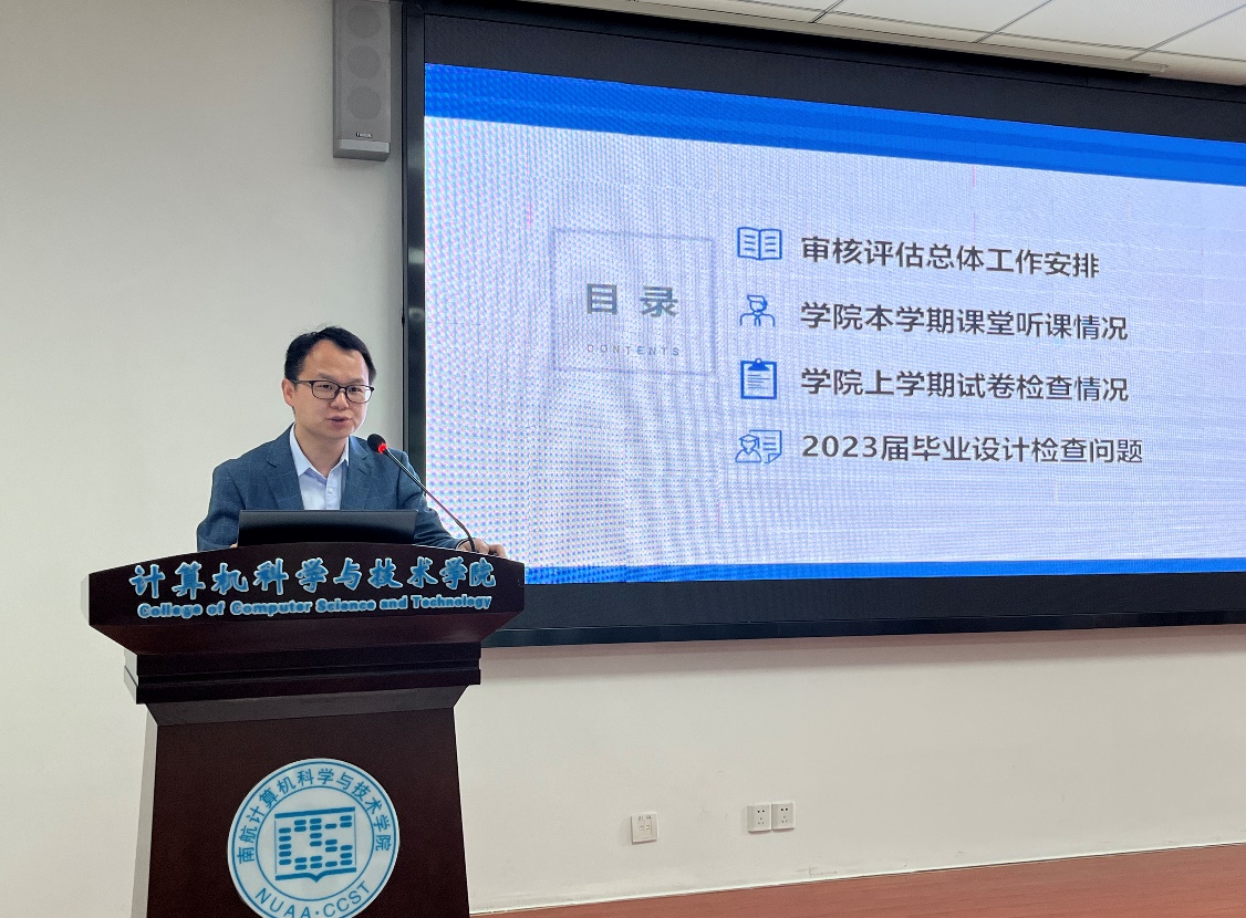 副院长黄圣君、院党委副书记王宁分别结合学院近期工作对本科教育教学审核评估工作进行了补充说明,号召全体教职工切实扛牢教师主责主业,以高度的责任感和使命感扎扎实实做好日常教育教学工作;研究生导师和本科生班主任要依托课题组组会、本科生班会等开展“思政一刻钟”和思政引领,切实推动学院人才培养高质量发展。