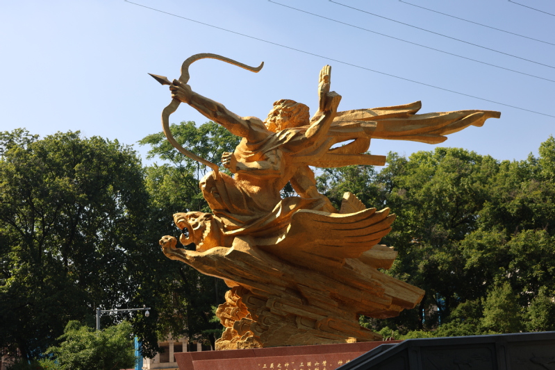 在讲解员的带领下,师生党员共同参观了南京抗日航空烈士纪念馆。一进大门,雕塑“正义之神”映入眼帘,三头六臂的正义之神跨坐在飞天虎上,手中的利箭直指长空。