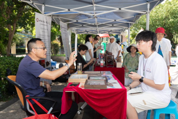 活动现场社区居民积极参与非遗作品的制作。在传承人指导下,孩子们学做十八翻、秦淮灯彩,爱美的女生学做谢馥春鸭蛋粉……活动现场,计算机学院的志愿者们化身“非遗推荐官”,用心捕捉细节,传递文化精髓。他们手持录像设备,对传承人进行采访,并充分利用抖音、视频号等新媒体平台,分享非遗技艺的精彩瞬间与背后故事。活动吸引了众多社区居民前来围观、体验、购买。