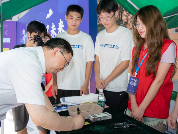 迎新当天,校党委书记甄良,校长姜斌,副校长徐正扬、张启钱等学校领导来到现场视察学院迎新工作,与新生共同签名并合影留念,为新生送上暖心祝福。