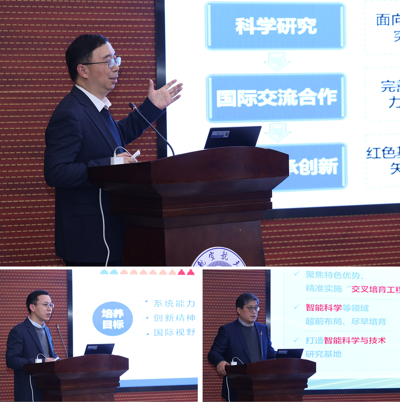 随后,姜斌详细介绍了控制学科群的建设进展,计算机学院院长黄圣君、人工智能学院院长张道强依次介绍了计算机学院和人工智能学院的建设情况。