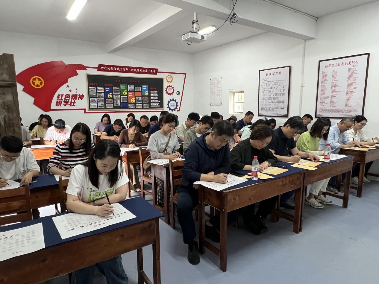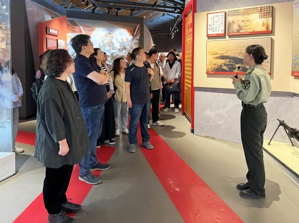 在中国新四军历史研究馆,大家依次参观了“完成集结整编,东进江南敌后”“开展游击战争,盐城重建军部”“保卫根据地,重建民主政权”“完成战略任务,夺取抗战胜利”“北撤转战华东,参加解放战争”“华中人民长城,将帅英杰辈出”“弘扬铁军的精神,永葆红色基因”等展厅,透过馆藏文物和图片文献,追寻新四军的战斗足迹,感受革命先烈铸就的新四军铁军精神——听党指挥铁的信仰、报国为民铁的担当、逆境制胜铁的意志、集中统一铁的纪律。