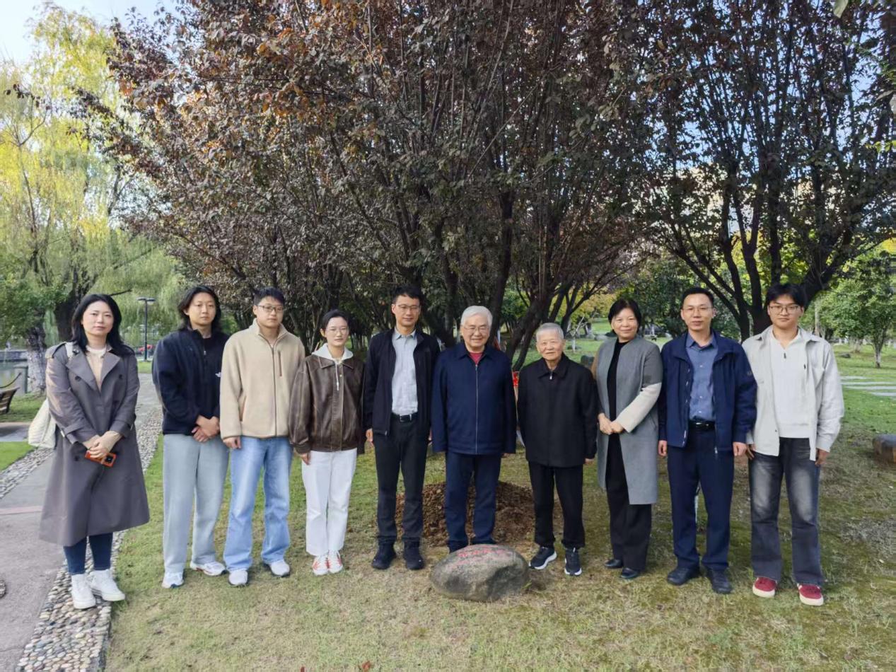 讲座结束后,郑院士与师生代表共同在砚湖边院士林培土、围堰、浇水。