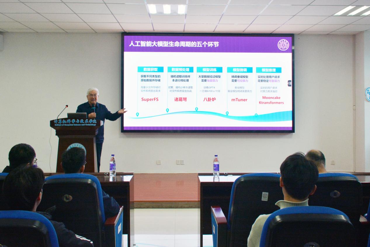 郑院士从人工智能大模型的生命周期切入,系统介绍了从数据准备到模型应用的五个关键环节,并着重阐述了大模型在实际推理中的技术挑战与创新解决方案,让现场师生切身感受到人工智能大模型技术正日益走向普及化、实用化。