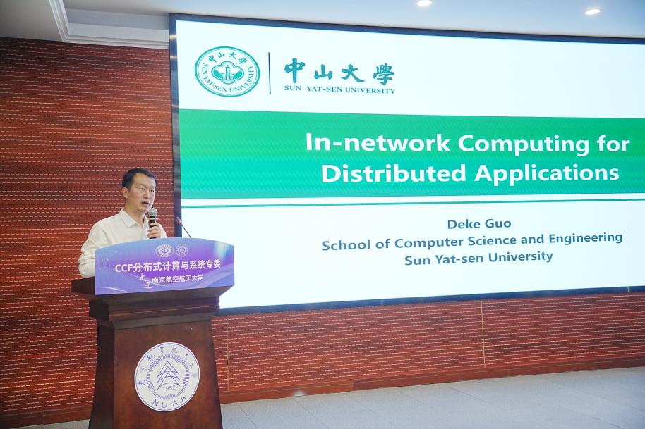 中山大学郭得科教授以《网内计算方法和实践》为题,指出网内计算是算力网络的核心技术特征,也是当前业界关注的焦点。他深入分析了数据中心内分布式应用在网络传输中面临的挑战,总结典型分布式应用在计算架构和流量相关性上的共性特征,并重点介绍了面向新型数据中心网络架构的优化方案——通过挖掘网络架构与设备的网内计算潜力,可显著提升数据中心网络传输性能,支撑更大规模分布式应用的稳定运行。