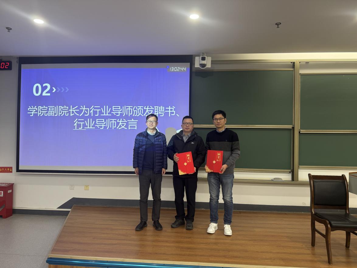 随后,李鑫为企业专家王佳、庞建颁发了行业导师聘书。王佳表示,卓越工程师不仅要精通代码与算法,团队协作和持续学习能力同样不可或缺,期望同学们以行业高标准不断打磨自身本领。庞建表示,企业将持续为同学们提供真实项目实践机会,助力学生实现从理论知识到工程创新的高效转化。