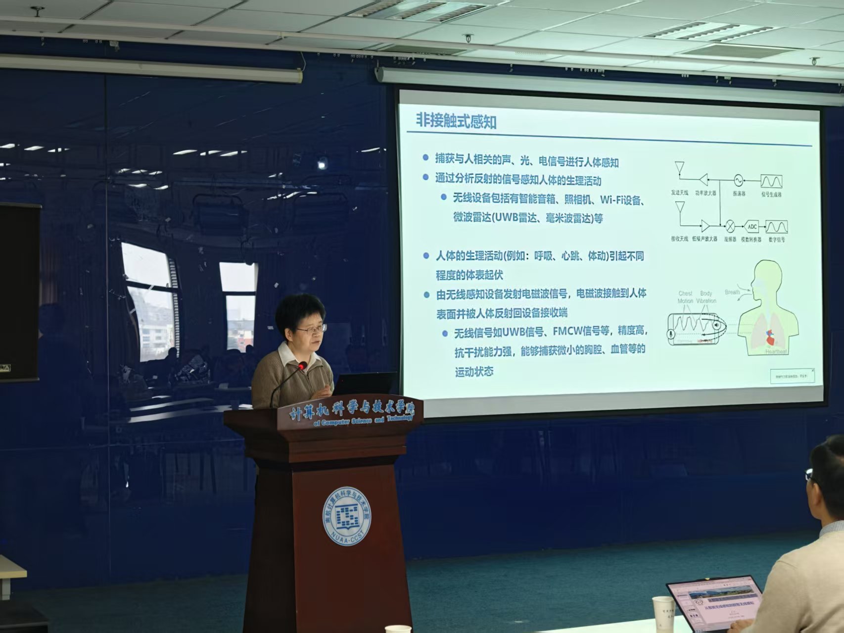 中国科学院软件研究所二级研究员、博士生导师金蓓弘研究员以“非接触式人体健康感知技术进展与趋势”为主题,系统阐述了该领域的最新研究成果。她重点解读了人工智能技术在非接触心电图监测、血压检测、血管弹性评估,以及睡眠呼吸暂停识别、睡眠分期等场景中的创新应用,结合实际民生需求深入分析了当前技术攻关难点,并展望了未来产业化发展路径,为参会师生清晰勾勒出个体化健康管理的技术实现蓝图。