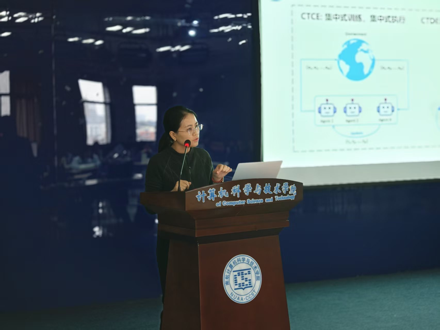 湖南大学刘璇教授围绕“群体智能协同决策前沿进展”展开报告。作为新一代人工智能的五大重点形态之一,群体智能在军民领域具有广阔应用前景。刘璇教授重点阐述了多智能体强化学习在提升个体自组织、自学习能力及群智协同决策效率中的关键作用,结合无人机群控、智能交通调度、工业机器人群协同等典型场景,深入剖析了当前基于多智能体深度强化学习的群智决策面临的核心挑战,并展示了团队在复杂任务群智协同决策领域的最新技术突破。